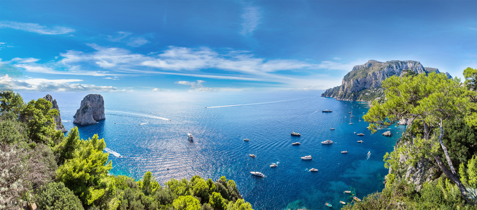 Stop for a swim in the crystal-clear waters of Marina Piccola or one of the many hidden coves accessible only by sea. Enjoy free time to explore the island on foot — visit the famous Piazzetta, the Gardens of Augustus, or take the chairlift to Monte Solaro for panoramic views.